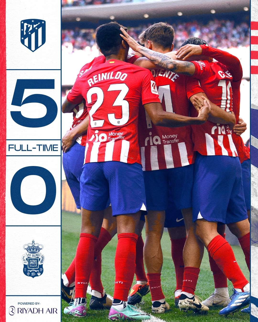 بذلك رفع أتلتيكو مدريد رصيده إلى 51 في المركز الثالث مؤقتاً، في حين توقف رصيد لاس بالماس عند 35 نقطة في المركز الثامن.