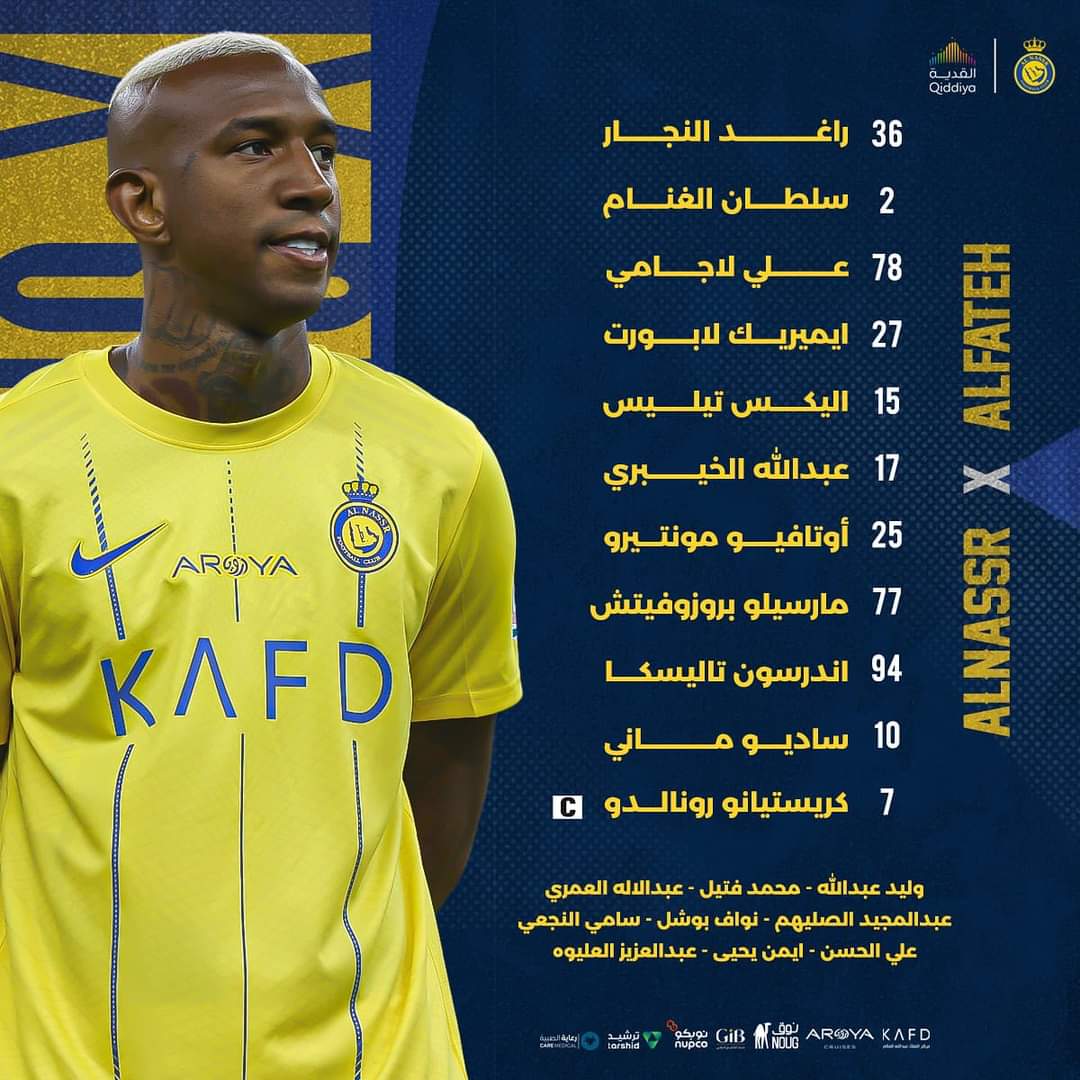 الهجوم: أندرسون تاليسكا – ساديو ماني – كريستيانو رونالدو