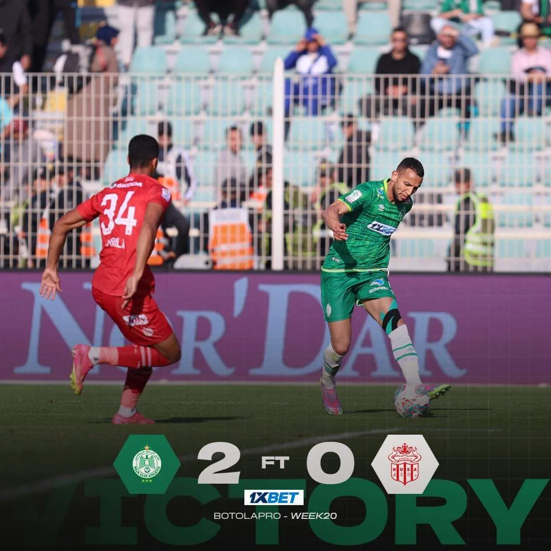 استعاد الرجاء سكة الانتصارات، بعدما تغلب على حسنية أكادير بهدفين نظيفين، لحساب الجولة العشرين من الدوري المغربي.