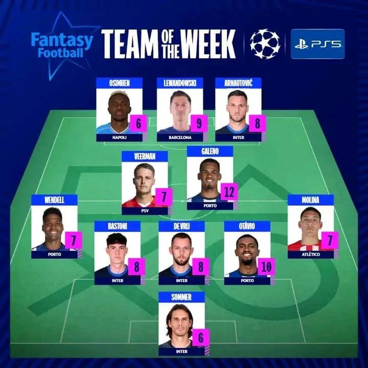 الدفاع: ناهويل مولينا (أتلتيكو مدريد) – أوتافيو (بورتو) – ستيفان دي فري (إنتر) – أليساندرو باستوني (إنتر) – ويندل (بورتو)