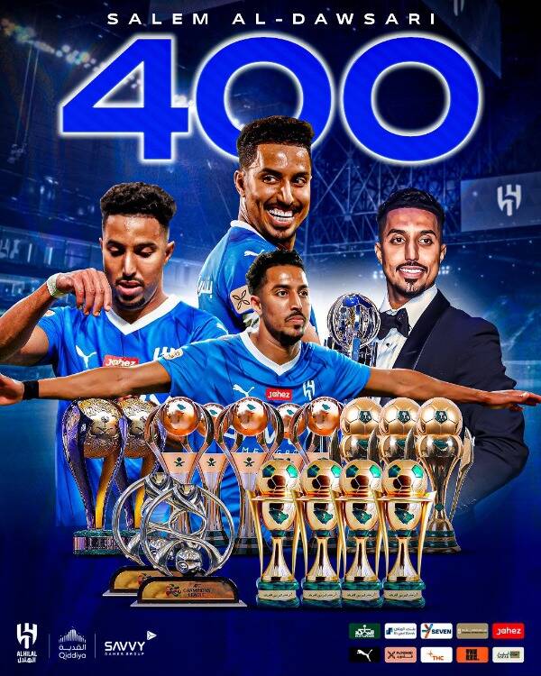 وأعلن الحساب الرسمي للهلال السعودي على منصة “إكس”، أن لقاء سباهان اليوم، شهد الظهور رقم 400 للدوسري بقميص الهلال في مختلف المسابقات.