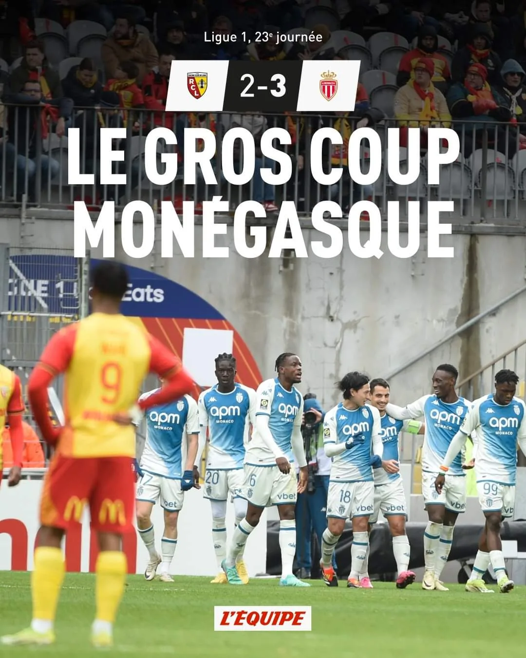 تغلب موناكو على مضيفه لانس بثلاثة أهداف لهدفين، لحساب الأسبوع الثالث والعشرين من الدوري الفرنسي.