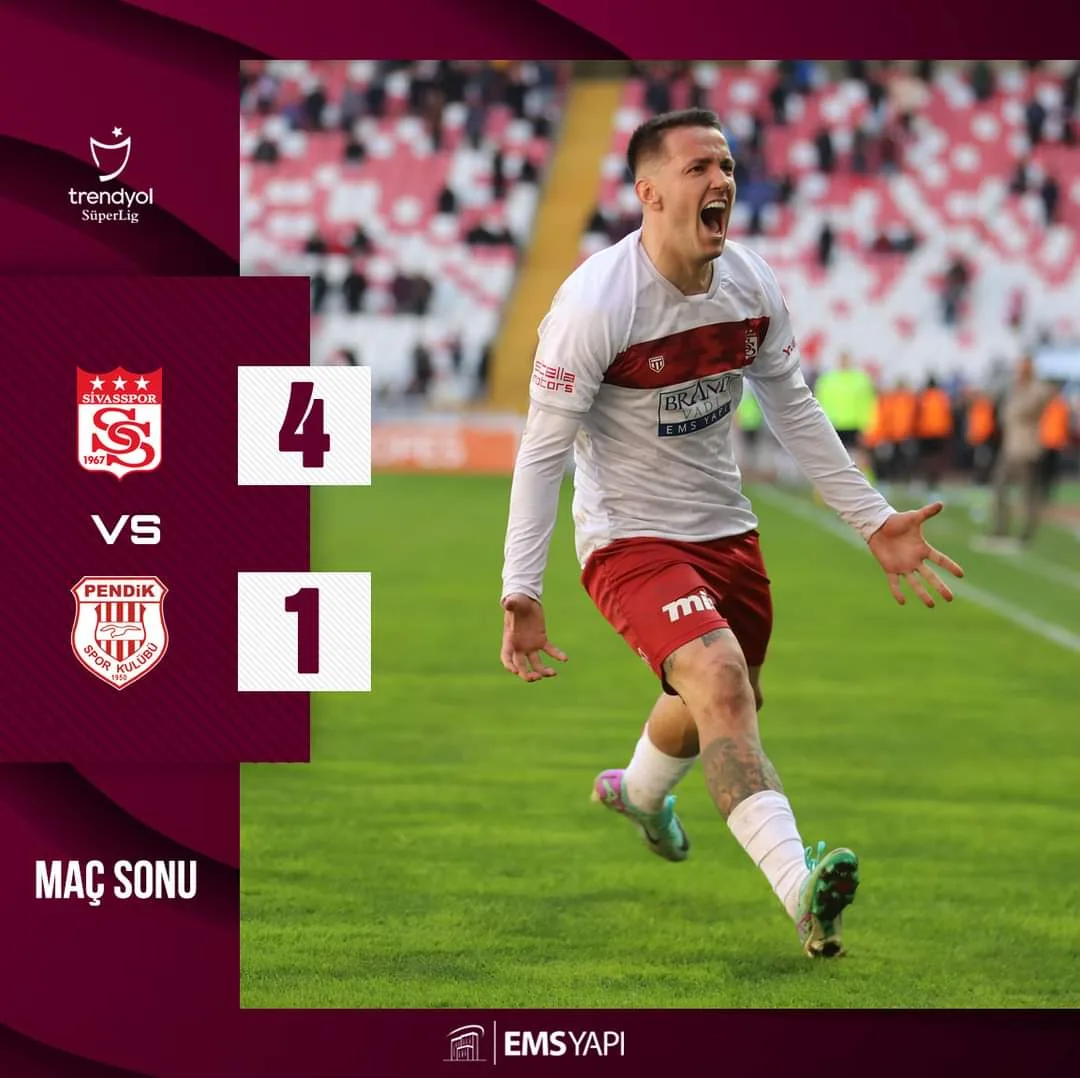 ووقع على رباعية سيفاس كل من: كوينسي منيح في الدقيقة 26، وجانير عثمان باشا (59)، وري ماناي (69)، وفودي كويتا في الدقيقة الأخيرة.