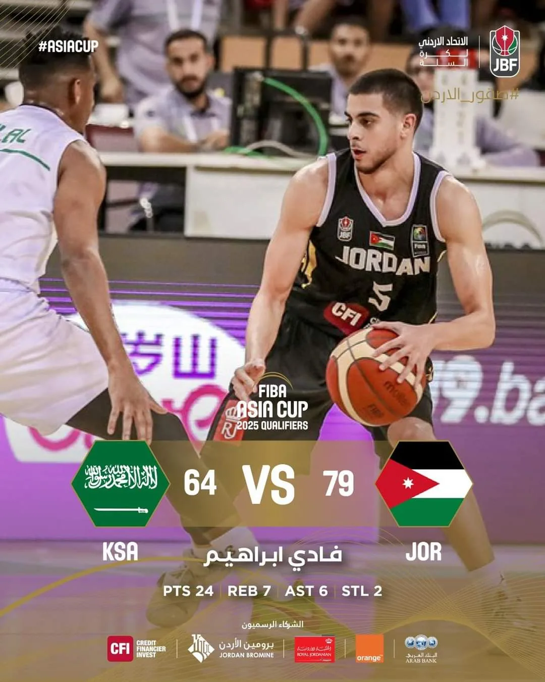 تغلب المنتخب الأردني لكرة السلة، على نظيره السعودي اليوم الاثنين، بفارق 15 نقطة، ضمن تصفيات النافذة الأولى، المؤهلة إلى كأس آسيا 2025.