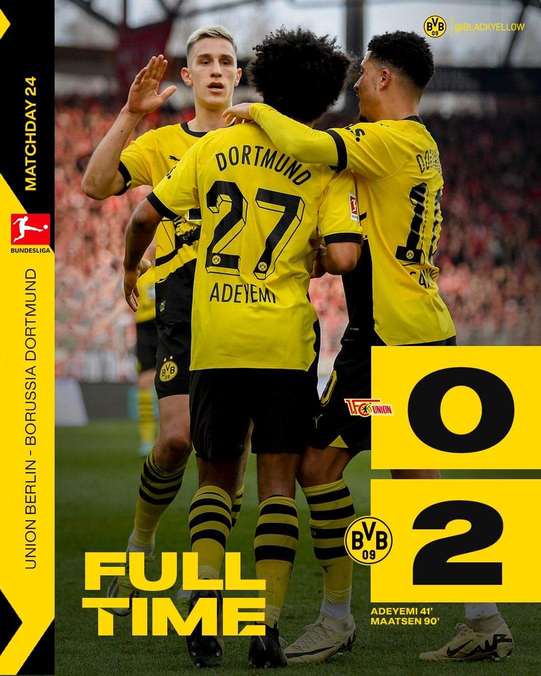 تغلب بوروسيا دورتموند على مضيفه يونيون برلين، بهدفين نظيفين، لحساب الجولة 24 من الدوري الألماني.