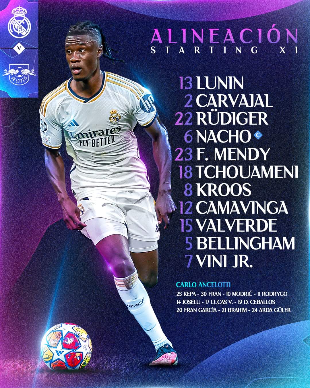 أعلن الإيطالي كارلو أنشيلوتي، مدرب ريال مدريد، تشكيلة الميرنجي التي ستواجه لايبزيج الألماني، في إياب ثمن النهائي من دوري أبطال أوروبا.