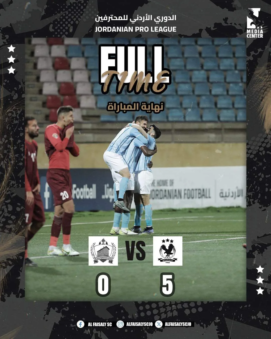 اكتسح الفيصلي نظيره معان بخماسية نظيفة، في ختام مباريات الجولة 14 من دوري المحترفين الأردني.