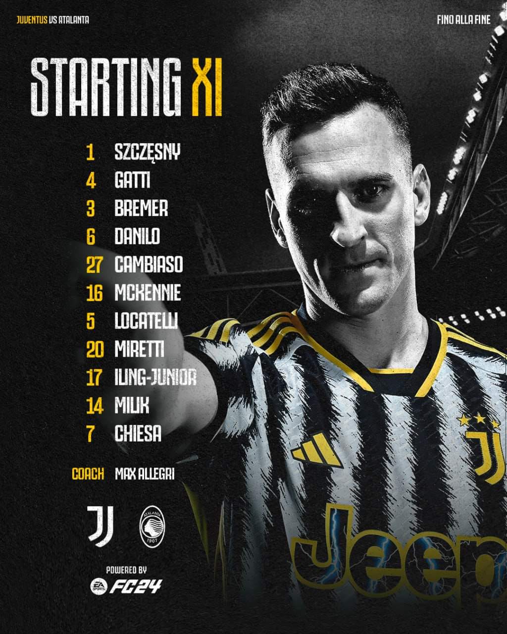 أعلن الإيطالي ماسيمليانو أليجري، مدرب يوفينتوس، تشكيلة فريقه استعداداً لمواجهة ضيفه أتالانتا، ضمن الجولة الثامنة والعشرين من الكالتشيو.