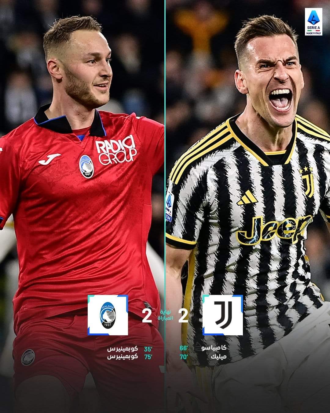 حسم التعادل بهدفين لمثلهما، مواجهة يوفينتوس وضيفه أتالانتا، ضمن الجولة 28 من الدوري الإيطالي.