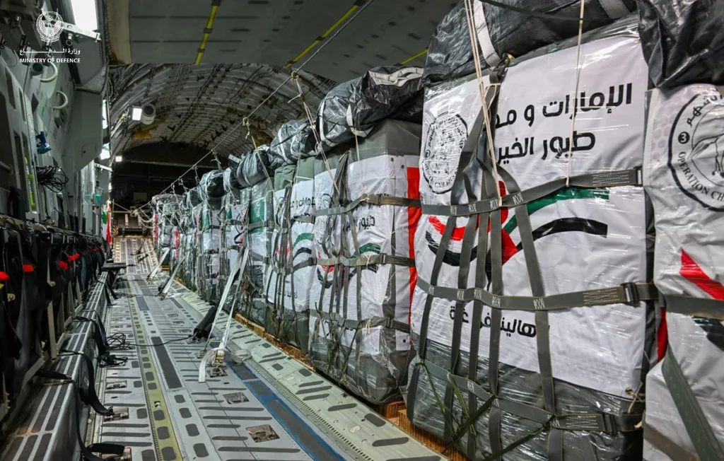 أعلنت قيادة العمليات المشتركة في وزارة الدفاع الاماراتية عن تنفيذ عملية “طيور الخير” الإسقاط الجوي الـ 18 للمساعدات الإنسانية والإغاثية على شمال قطاع غزة.