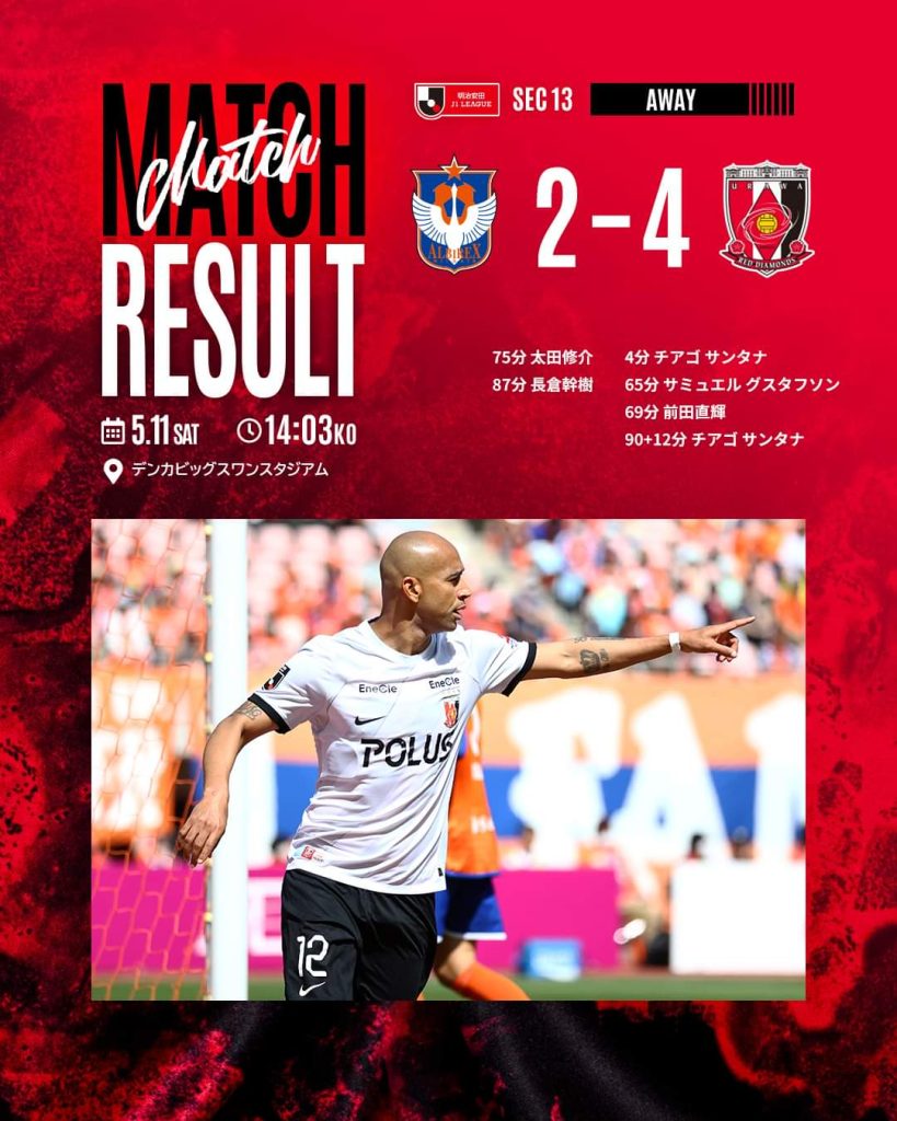 حقق أوراوا ريد دياموندز فوزاً مهماً على مضيفه ألبيركس نيجاتا، بنتيجة 4-2 ضمن الجولة 13 من الدوري الياباني الممتاز.
