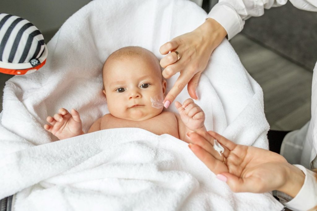 – تجنب استخدام منتجات عطرية أو كيميائية قوية على بشرة طفلك.