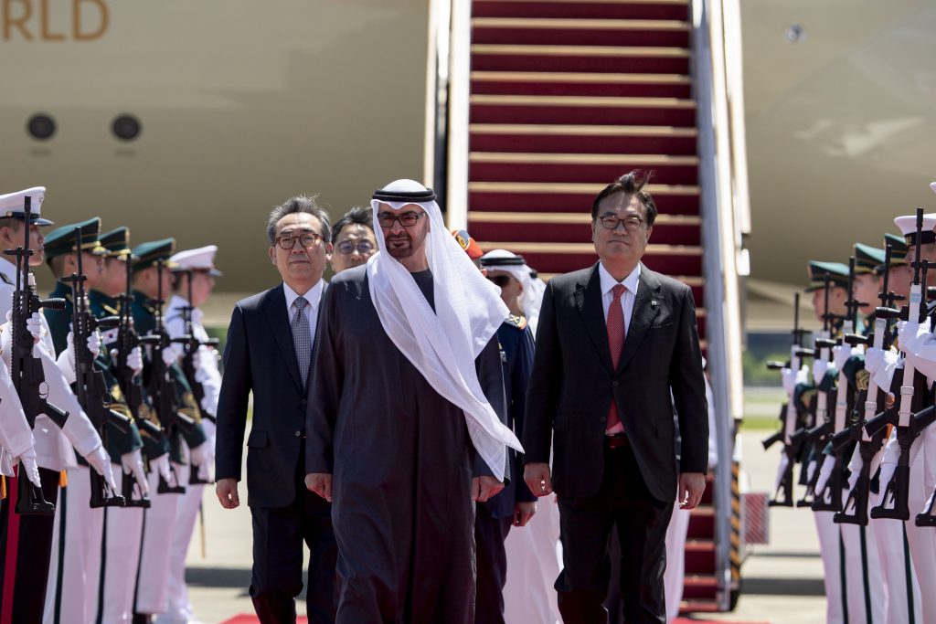 وبحسب “وام”، قد رافقت طائرة صاحب السمو رئيس الدولة لدى دخولها الأجواء الكورية، طائرات عسكرية احتفاء وترحيباً بزيارة سموه.