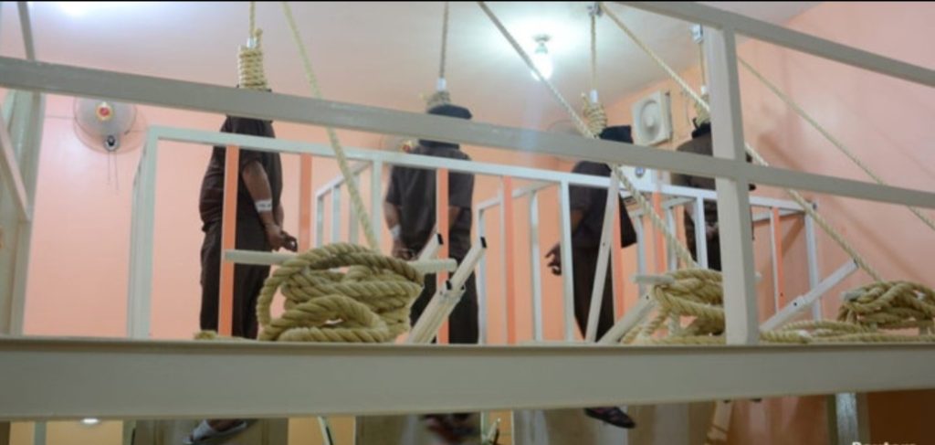 وذكر المصدر الأمني أن حكم الإعدام نفّذ بالعراقيين الثمانية “وفقا للمادة 4 من قانون مكافحة الإرهاب”.