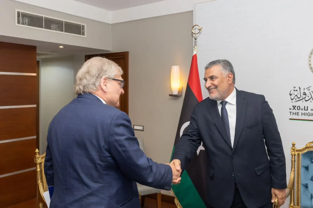 وذكر المكتب الإعلامي للمجلس الأعلى للدولة تم خلال اللقاء بحث مستجدات الأوضاع السياسية في ليبيا وسبل الدفع بها قدمًا للوصول لانتخابات وطنية وفق الاتفاقات السياسية تلبي طموح الشعب الليبي.
