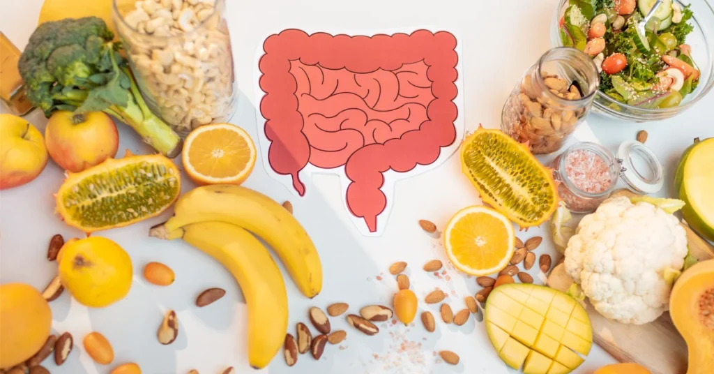 البابايا: تحتوي على إنزيم البابايين، الذي له خصائص هضمية يمكن أن تساعد في تكسير الطعام وتسهيل هضمه. كما أنه غني بالألياف، والتي يمكن أن تساعد في إضافة كتلة إلى البراز وتسهيل حركته عبر الجهاز الهضمي.