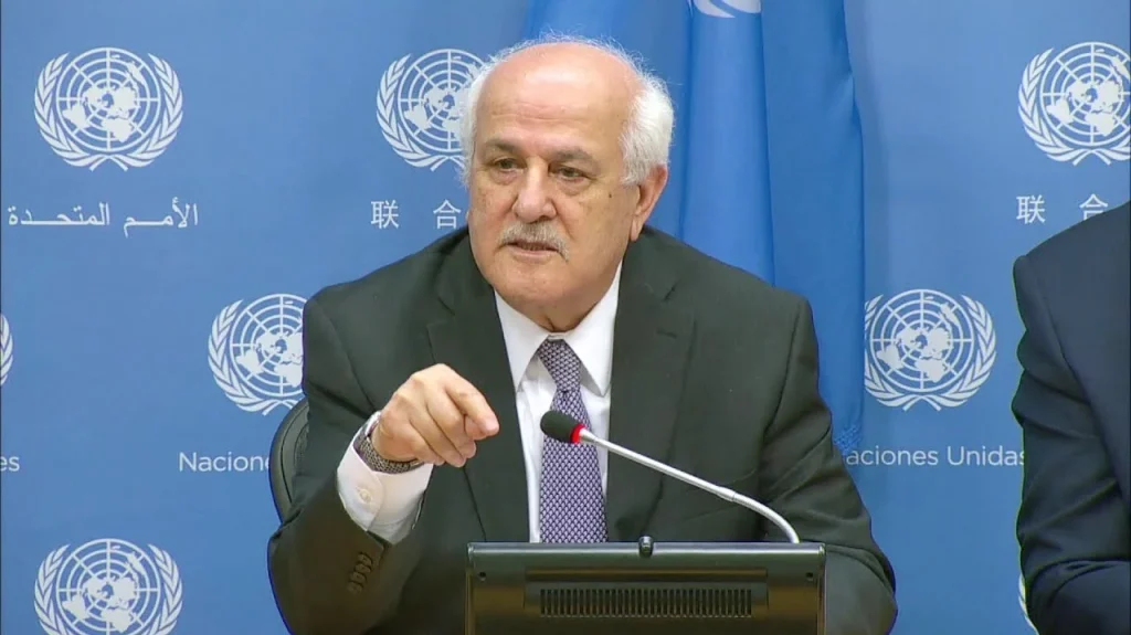 بعث رياض منصور، المندوب الدائم لدولة فلسطين لدى الأمم المتحدة، بثلاث رسائل متطابقة إلى كل من أنطونيو غوتيريش الأمين العام للأمم المتحدة، ورئيس مجلس الأمن لهذا الشهر (الاتحاد الروسي)، ورئيس الجمعية العامة للأمم المتحدة، بشأن مرور تسعة أشهر منذ أن شن الكيان الإسرائيلي، القوة القائمة بالاحتلال، عدوانه على قطاع غزة، ومنذ بدء هجماته العسكرية على السكان المدنيين الخاضعين لـ57 عاما من الاحتلال الأجنبي.