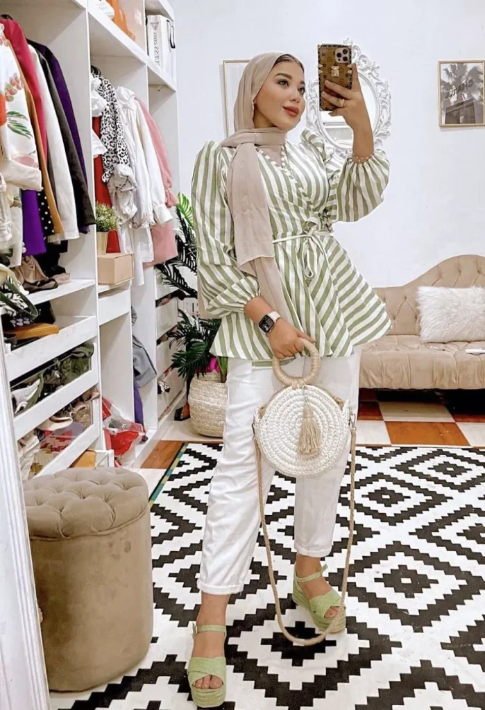 ولكن كيف يمكن للمحجبة تنسيق القميص المقلم بطريقة تُزيد طول قامتها؟ إليكِ بعض النصائح: