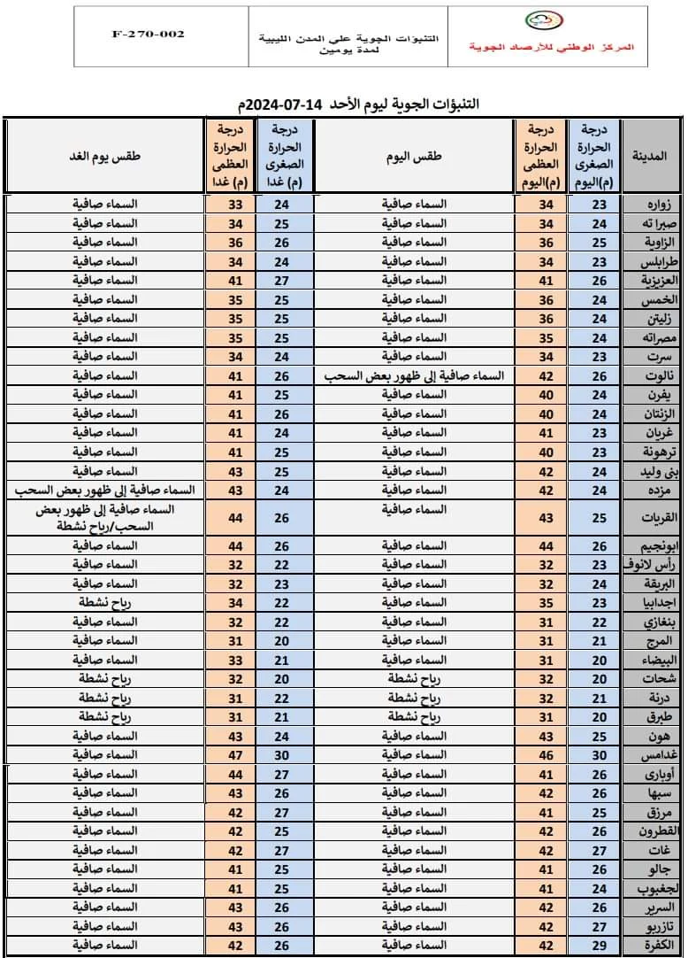 ظهرت المقالة الأرصاد: طقس صيفي معتدل بالمناطق الساحلية من رأس أجدير لطرابلس وسرت ومرتفعا ببقية المناطق أولاً على ج بلس.