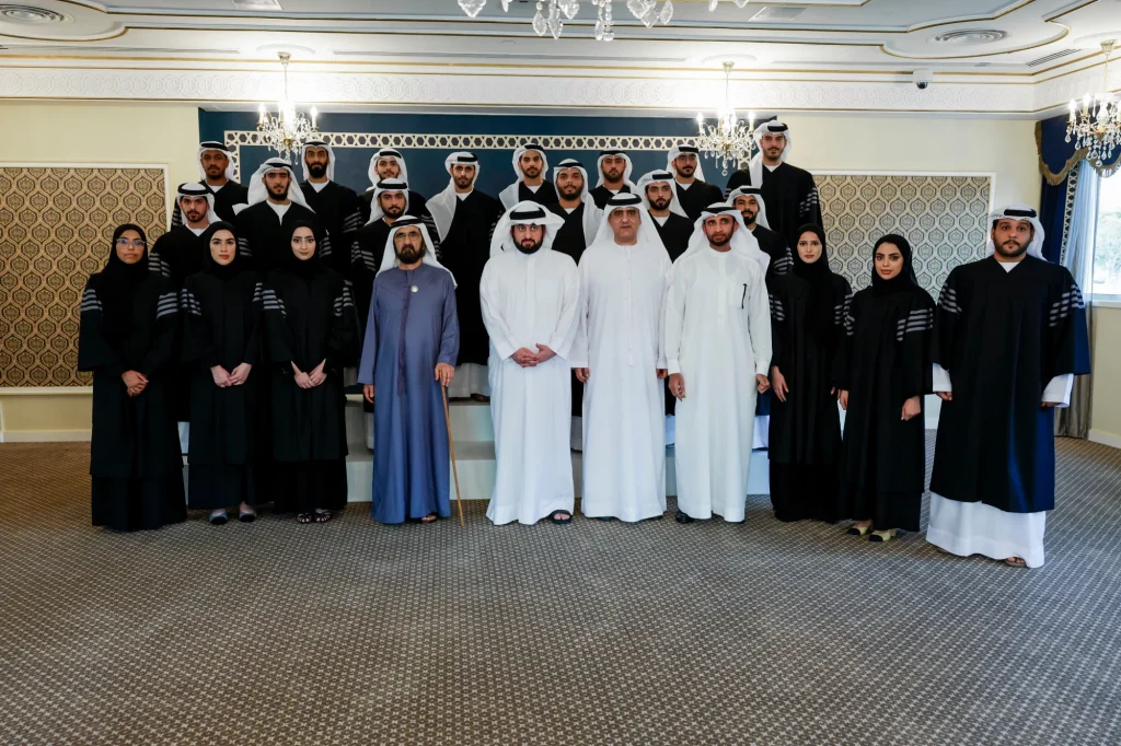 رحب صاحب السمو الشيخ محمد بن راشد آل مكتوم بأعضاء النيابة الجدد، متمنياً لهم التوفيق في أداء مهامهم، وداعياً إياهم للقيام برسالتهم على الوجه الأكمل. وأكد سموه على أهمية دورهم في إعلاء كلمة القانون وتأكيد سيادته، مشدداً على ضرورة التحلي بالأمانة والشعور بالمسؤولية تجاه المجتمع وكافة أفراده، وأن يكون تحقيق العدالة هو الهدف الأسمى لهم، بما يسهم في حفظ أمن المجتمع وترسيخ مقومات تقدمه وازدهاره.