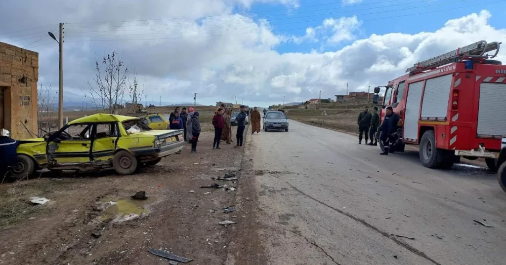 وتدخلت مصالح الحماية المدنية على الساعة 05 سا 58د، من أجل حادث إصطدام بين سيارة و شاحنة على مستوى الطريق الوطني رقم 62 ببلدية و دائرة سيدي المحجوب.