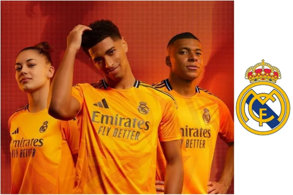 وسيكون القميص باللون البرتقالي مع خطوط سوداء على الكتفين بدون ياقة، وظهر بالتقديم العديد من النجوم مثل فالفيردي، بيلينجهام وأيضاً الوافد الجديد كيليان مبابي.