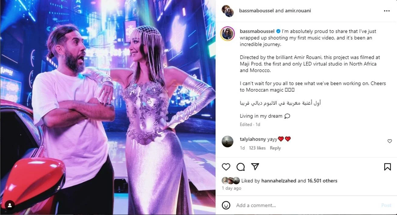 وتابعت: “تم تصوير هذا المشروع، الذي أخرجه المخرج الرائع أمير رواني، في Maji Prod، أول استوديو افتراضي بتقنية LED في شمال إفريقيا والمغرب”.