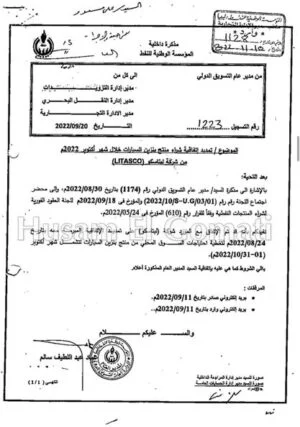 ديوان المحاسبة يحاول منع المؤسسة من دفع القيمة تعويلآ على القضية المحكوم فيها على مدير إدارة التسويق الدولي بالمؤسسة المتورط في التعاقد مع شركة ليتاسكو والمشترك معها في توريد البنزين المضروب.