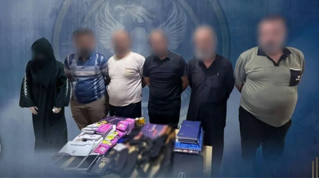 وأضافت، أنه”على الفور تم تشكيل فريق عمل استخباري وتحديد أماكن تواجد المتهمين، حيث تم مداهمة المكان والقاء القبض على المتهمين البالغ عددهم (6) وبحوزتهم (500) بطاقة دفع الكتروني يستخدمونها لتحويل الأموال خارج العراق بصورة غير قانونية”.