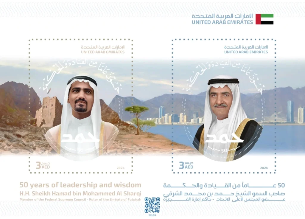 أصدرت سفن إكس «7X»، مجموعة بريد الإمارات سابقاً، بالتعاون مع المكتب الإعلامي لحكومة الفجيرة، طابعاً بريدياً احتفاءً بالذكرى الخمسين لتولي صاحب السمو الشيخ حمد بن محمد الشرقي، عضو المجلس الأعلى حاكم الفجيرة، مقاليد الحكم في الإمارة.