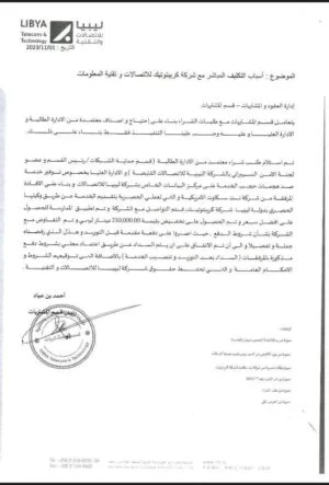 وقد تم إعفاء المسؤول من مهامه كرئيس للشركة القابضة بعد صدور تقارير تفيد بأنه كان وراء الهجمات السيبرانية على البنية التحتية للاتصالات في ليبيا.