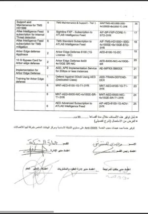 كما تم الكشف عن شراء معدات Anti-DDOs عن طريق شركة ليبيا للاتصالات بإجمالي قيمة 24.6 مليون دينار ليبي حيث ان القيمة الحقيقية هي 3.2 مليون دينار ليبي وفق المصادر