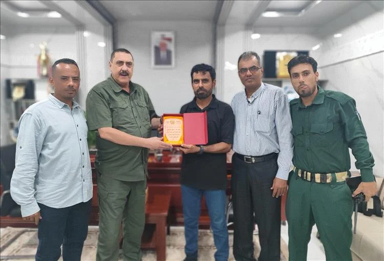 قام صباح اليوم مدير أمن عدن اللواء مطهر الشعيبي بتكريم الحكم الدولي في لعبة كرة القدم علي الحسني بعد مشاركته الناجحة مؤخرا ضمن حكام النخبة في البطولة