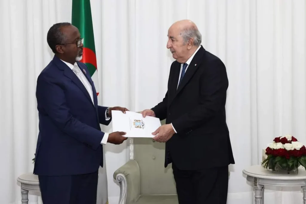 استقبل رئيس الجمهورية عبد المجيد تبون طاهر محمود جيليه المستشار والمبعوث الخاص لرئيس جمهورية الصومال الفيدرالية حاملا منه رسالة خطية إلى رئيس الجمهورية.