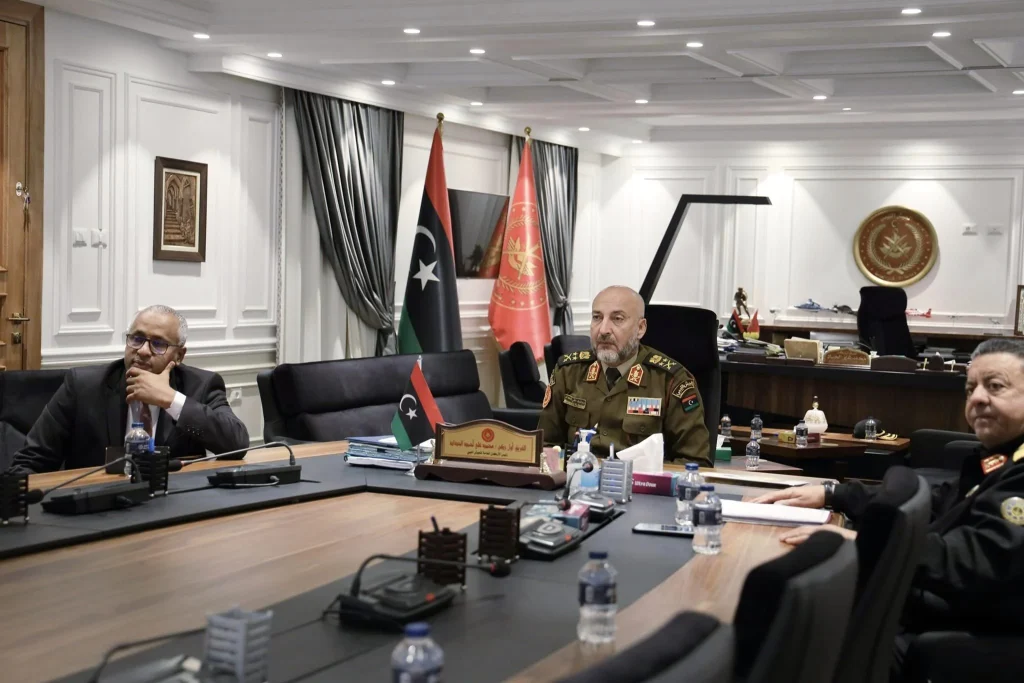 بحث رئيس الأركان العامة للجيش الليبي، الفريق أول ركن محمد الحداد، مع وزير البيئة، إبراهيم منير، وبحضور رئيس جهاز حرس السواحل وأمن الموانئ سبل التعاون وتوحيد الجهود بين رئاسة الأركان العامة للجيش الليبي متمثلاً بجهاز حرس السواحل وأمن الموانئ مع وزارة البيئة، وذلك في مجالات المحافظة على البيئة البحرية من التلوث.