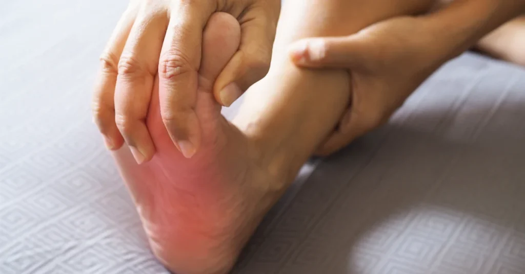 وجود ورم عصبي (نمو نسيج عصبي بين الأصابع يتسبب في الألم عند المشي).