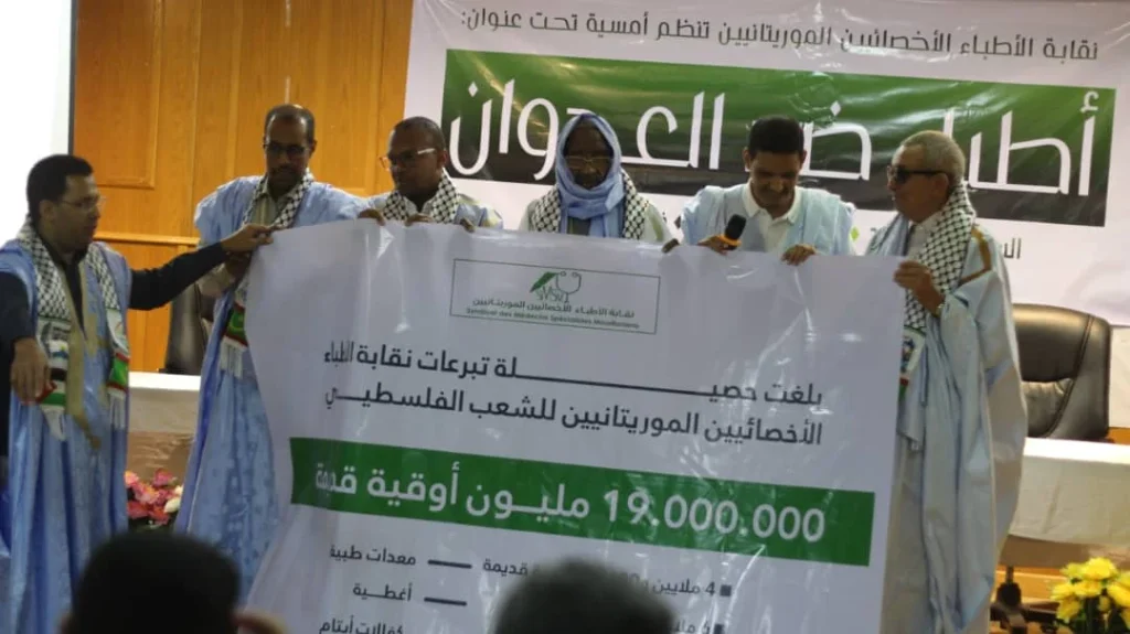 أعلنت نقابة الأخصائيين الموريتانيين عن مبادرة “السترة البيضاء من أجل غزة” وذلك ضمن أمسية تضامنية مع غزة نظّمتها النقابة مساء السبت الماضي تحت شعار: “أطباء ضد العدوان”.