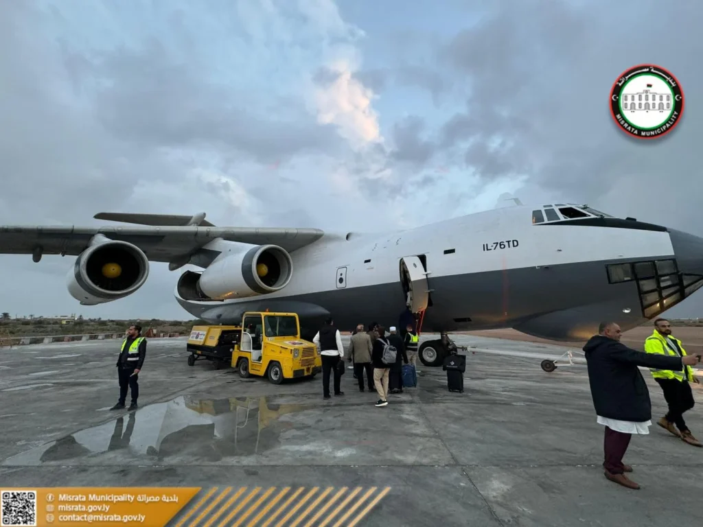 ووفقا لما نشرته الصفحة الرسمية لبلدية مصراته فقد صاحب الطائرة وفد ضم أعضاء المجلس البلدي وأعيان مجلس حكماء مدينة مصراته وجمعية الهلال الأحمر الليبي.