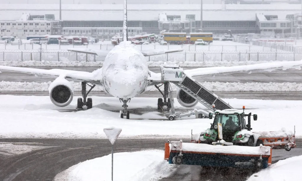 وذكرت متحدثة باسم المطار في جنوب غرب ألمانيا صباح اليوم الأحد أنه تعين إزالة الجليد عن الطائرات قبل الإقلاع.