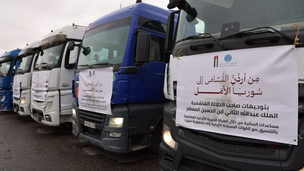 وأوضح أن القافلة تشمل مواد غذائية ومستلزمات طبية وأغطية ومواد تدفئة، مشيراً أن الأردن سيواصل تقديم الدعم للسوريين قدر الإمكان، من أجل تحقيق الاستقرار لديهم.