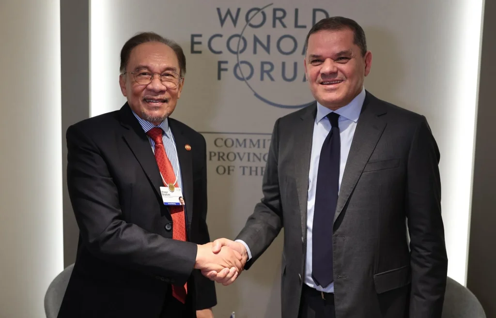 التقى رئيس حكومة الوحدة الوطنية عبدالحميد الدبيبة، اليوم الأربعاء، رئيس وزراء ماليزيا، أنور إبراهيم، على هامش أعمال منتدى الاقتصاد العالمي المنعقد في دافوس.