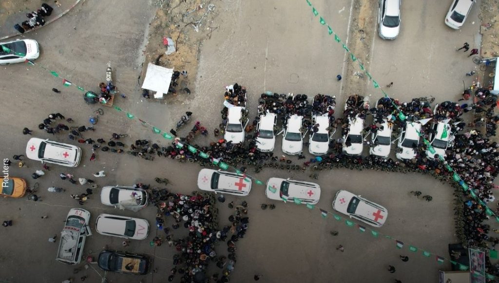وسلمت كتائب القسام، الجناح العسكري لحركة حماس، الأسيرين الإسرائيليين أوفيرا منجيستو (محتجز في غزة منذ 2014)، وتال شوهام للجنة الدولية للصليب الأحمر، في مدينة رفح.