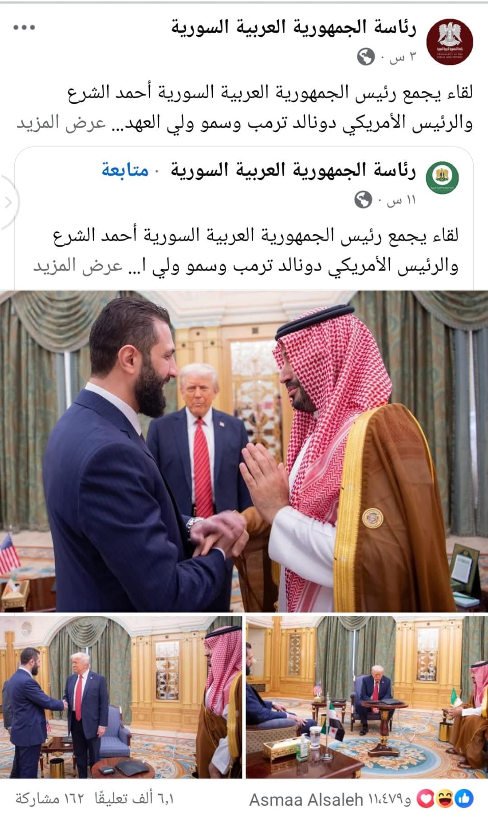 دمشق – في خطوة أثارت الدهشة والتساؤلات، قامت الصفحة الرسمية القديمة لرئاسة الجمهورية العربية السورية – التي استمرت بنشر أخبار النظام السابق حتى بعد سقوطه – بمشاركة منشور رسمي صادر عن الصفحة الجديدة التي أنشأتها الحكومة السورية الحالية بعد فشلها في استعادة السيطرة على الصفحة القديمة.