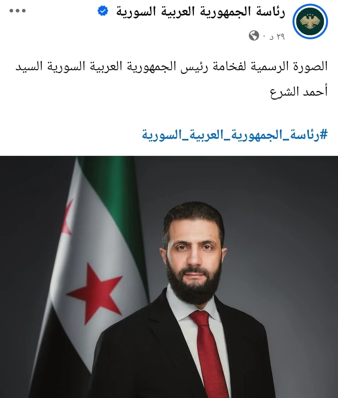 أطلقت رئاسة الجمهورية العربية السورية الصورة الرسمية لفخامة رئيس الجمهورية، السيد أحمد الشرع، والتي تم نشرها عبر المنصات الرسمية، وسط اهتمام واسع بالجودة الفنية والبُعد الرمزي الذي حملته الصورة.