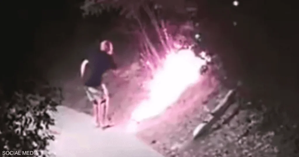 أظهرت كاميرات المراقبة رجلين يسيران ليلاً، حيث حاول أحدهما مرارًا إشعال العشب الجاف قبل أن يتمكن من إشعال النار. وتم التعرف على المشتبه بسرعة وبالتحقيق معه تبين أنه يحمل سجلًا جنائيًا، ويتضمن حكمين سابقين بتهم تتعلق بسلوك غير قانوني وحيازة مخدرات.