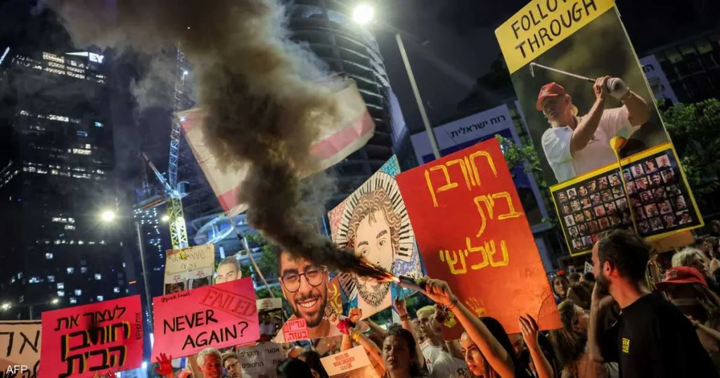 تجمع عشرات الآلاف من المتظاهرين في ساحة الرهائن وسط تل أبيب يوم السبت، احتجاجًا طارئًا على خلفية نشر مقاطع فيديو تظهر رهينتين إسرائيليتين في وضع ضعيف، ولا يزلن محتجزتين في قطاع غزة.