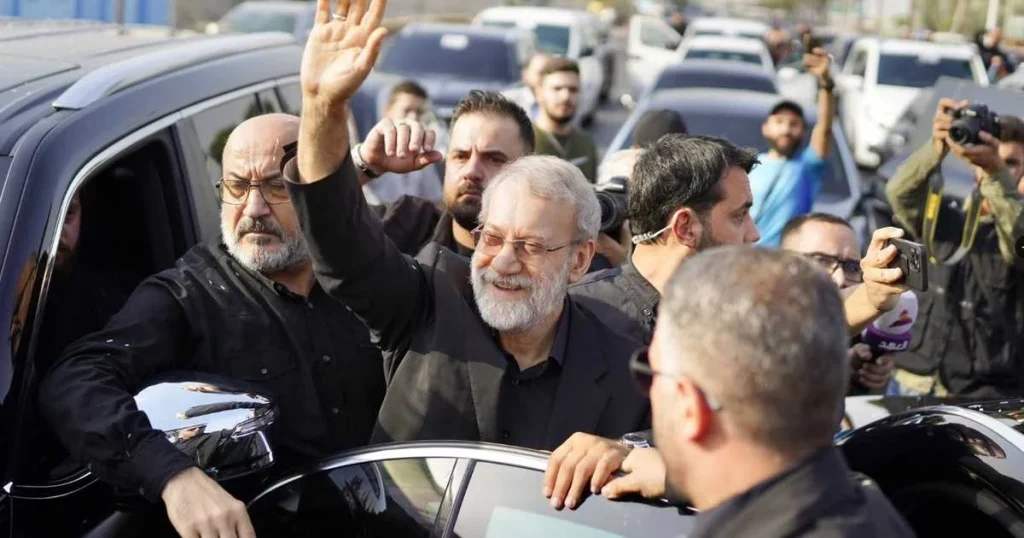 وصل أمين المجلس الأعلى للأمن القومي الإيراني علي لاريجاني إلى بيروت صباح الأربعاء، حيث توافد على المطار عدد محدود من الجماهير لاستقباله. وأعرب في تصريح صحفي من المطار عن اعتزازه بشعب لبنان، مؤكداً وقوف إيران إلى جانبه في جميع الظروف. وخلال مغادرته المطار، ظهرت على الفيديو الجماهير القليلة التي استقبلت لاريجاني، بعضهم يرفع أعلام حزب الله، إلا أن ذلك يعكس انخفاض الدعم الشعبي لإيران وحزب الله في الشارع اللبناني في الوقت الراهن.