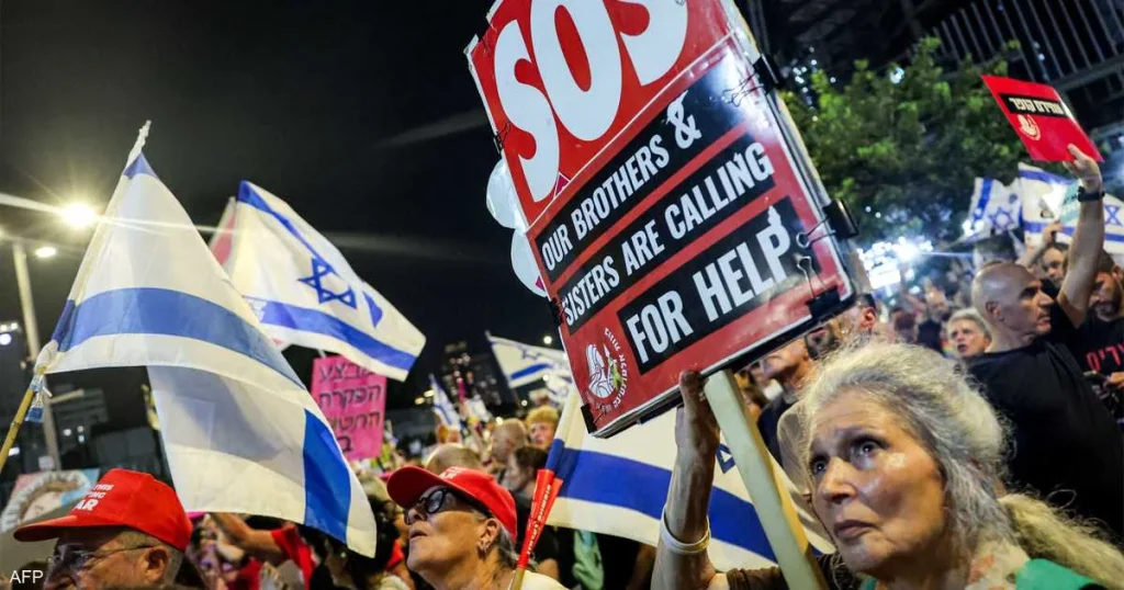 شهد الأحد السابق احتجاجات وإضرابات واسعة في إسرائيل، حيث طالب المتظاهرون بإطلاق سراح الرهائن الذين تحتجزهم حركة حماس في غزة. أغلق المحتجون الطرق في عدة مناطق، بما في ذلك طريق سريع رئيسي في تل أبيب، ورفعوا الأعلام الإسرائيلية وأعلامًا صفراء تعبر عن التضامن مع الأسرى.