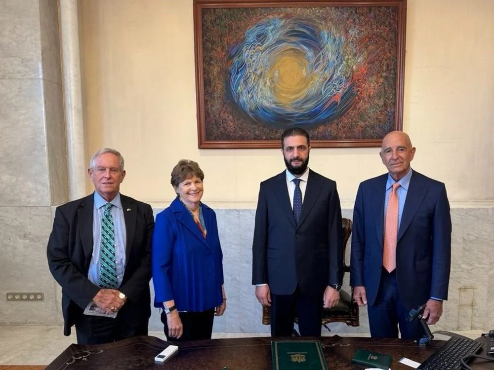 وفي وقت سابق، قالت الرئاسة السورية إن الرئيس الشرع استقبل السيناتور جين شاهين وعضو مجلس النواب جو ويلسون في العاصمة دمشق، حيث تم تبادل الحديث حول الأوضاع الأخيرة وسُبل تعزيز الحوار والتعاون بين سوريا والجانب الأمريكي، بما ينعكس إيجابًا على الأمن والاستقرار في المنطقة.