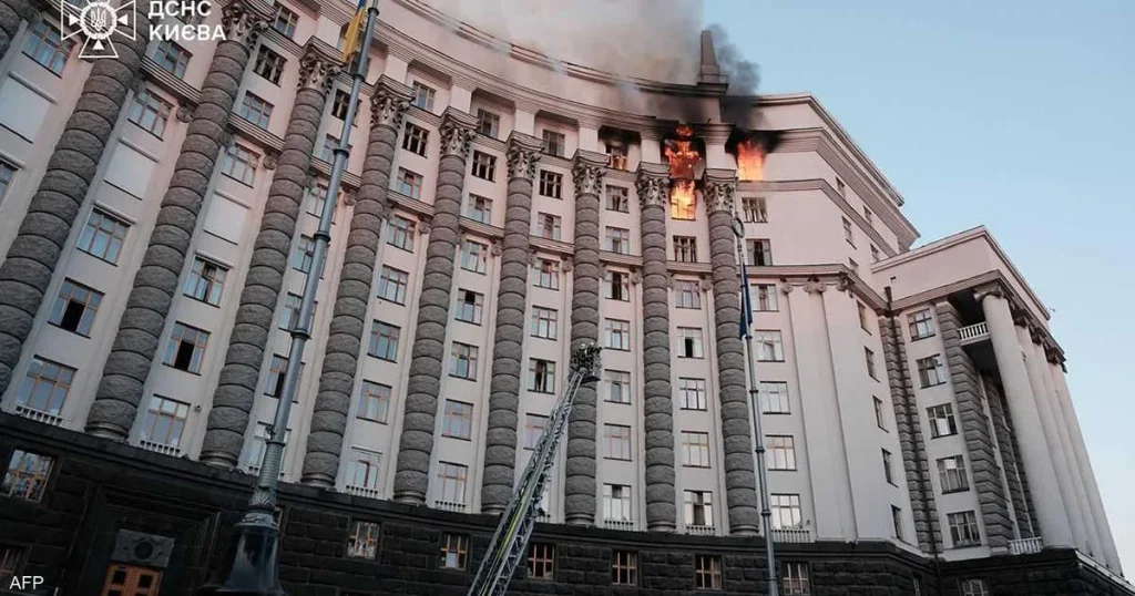 قال مسؤولون أوكرانيون الأحد إن روسيا شنت أكبر هجوم جوي ليلي خلال الحرب، مما أدى إلى اندلاع حريق في المقر الرئيسي للحكومة الأوكرانية في كييف ومقتل ثلاثة أشخاص، من بينهم رضيع انتُشلت جثته من تحت الأنقاض.